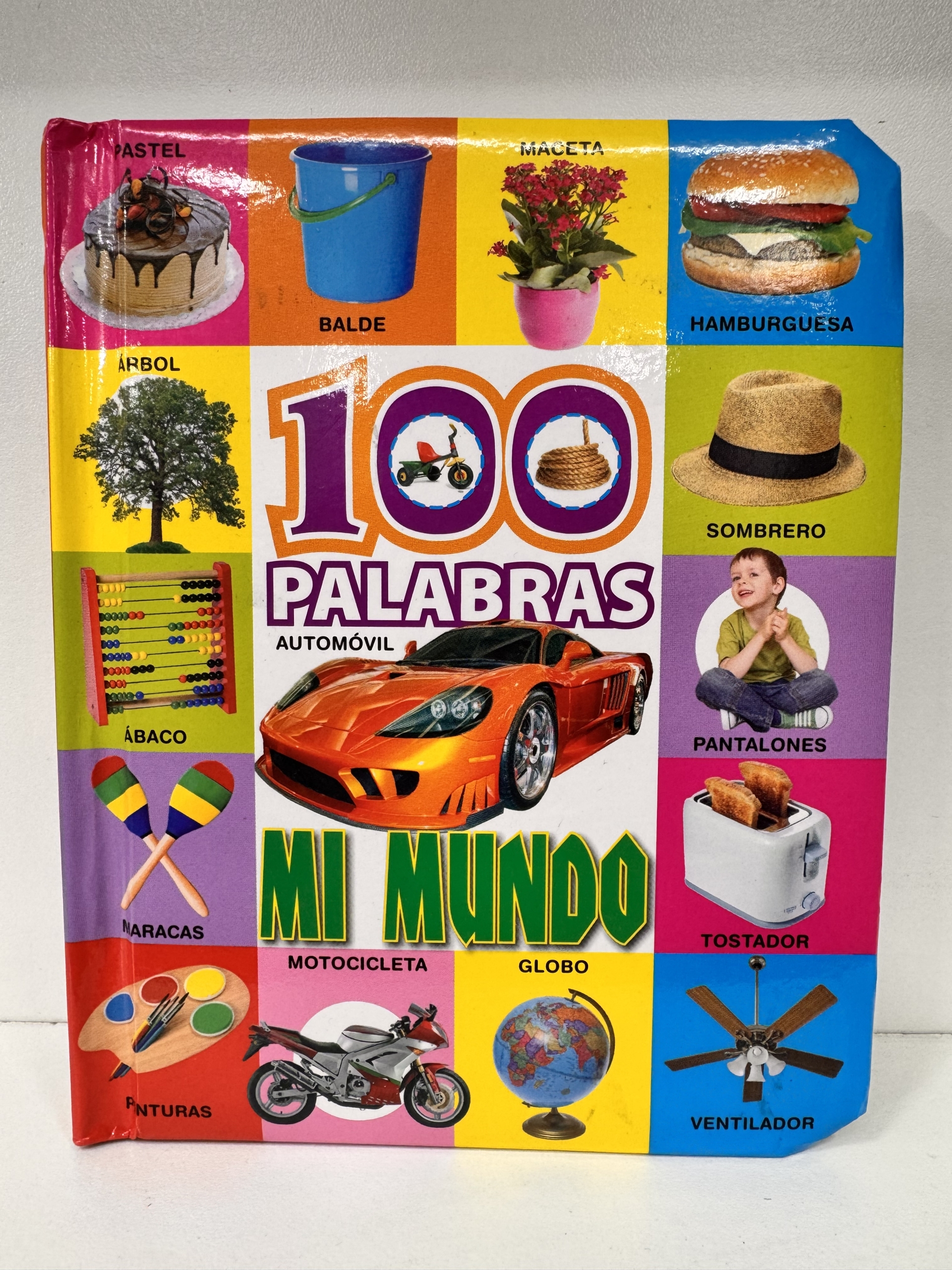 Libro PEQUEÑO ilustrado con 100 palabras básicas de mi mundo, ideal para estimular el vocabulario de los más pequeños con imágenes claras, coloridas y fáciles de reconocer. Perfecto para aprender jugando.