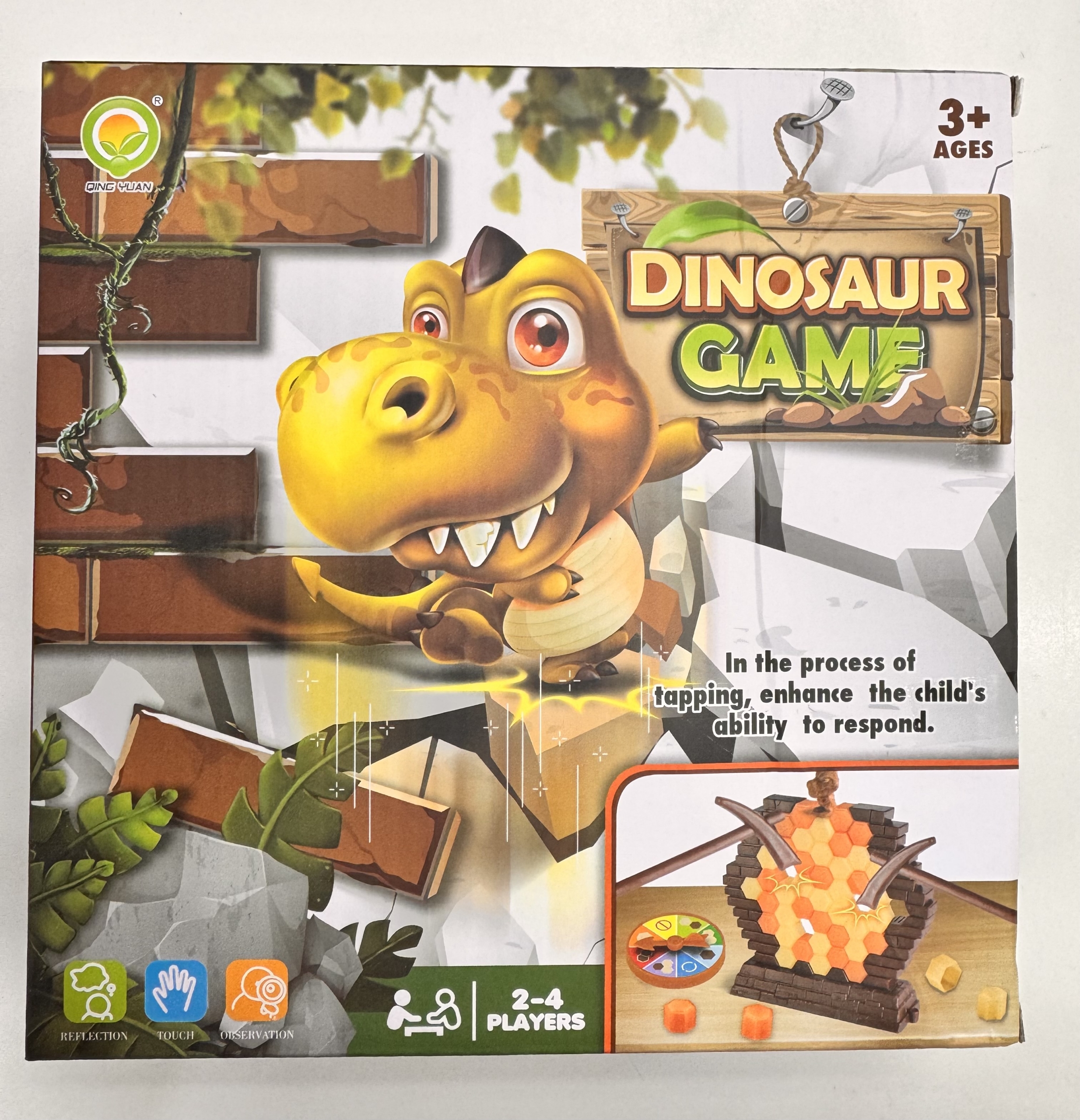 Juego de dinosaurio tipo desafío donde los niños deben golpear con cuidado para evitar que las piezas caigan. Favorece la concentración, la coordinación y los reflejos. Ideal desde 3 años.